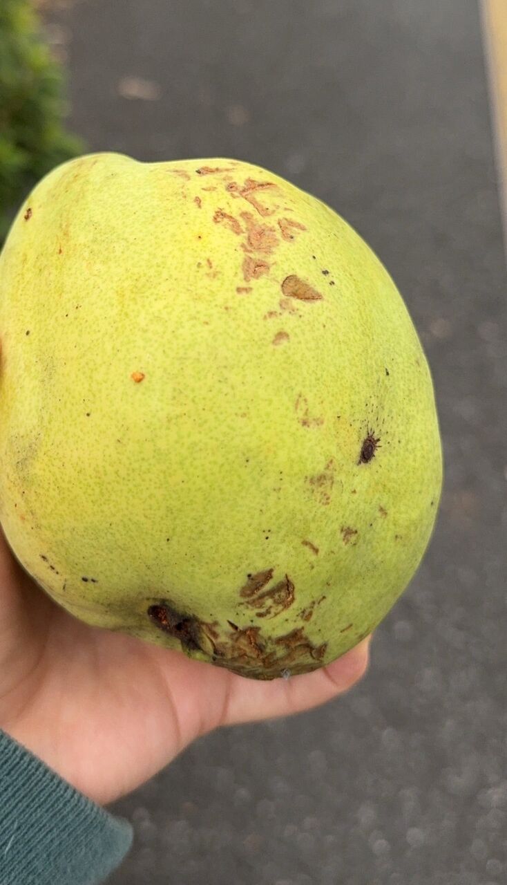 そうそれで歩き進めたら道に果物が落ちてて、Googleフォトで調べたらカリンという果物でした!