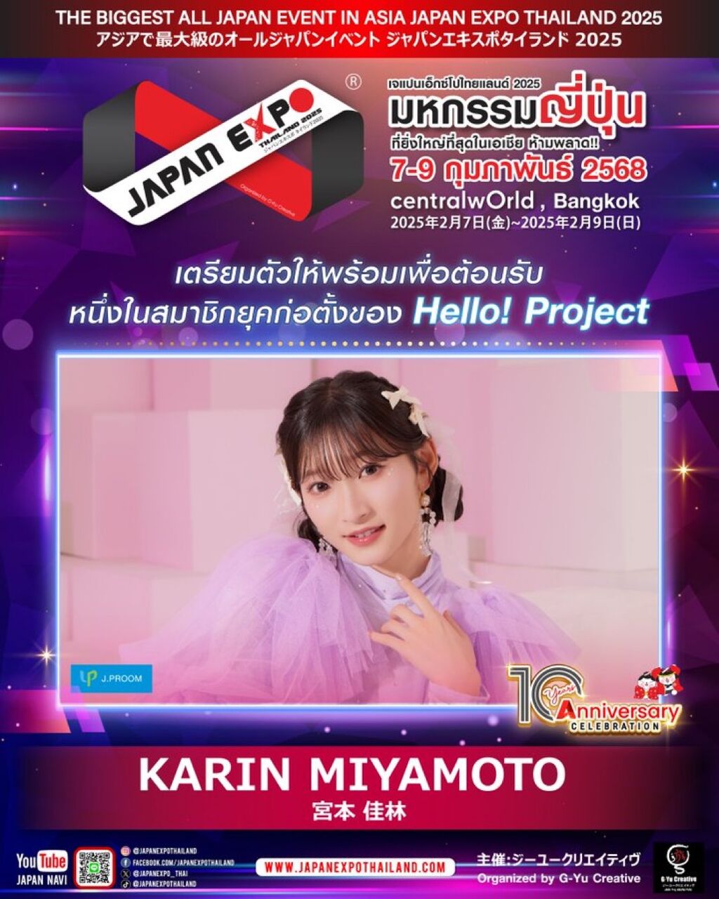 1st time‼ “KARIN MIYAMOTO” OG member of Hello! Project at #JAPANEXPOTHAILAND2025! and will brighten up everyone with a special Meet & Greet💖