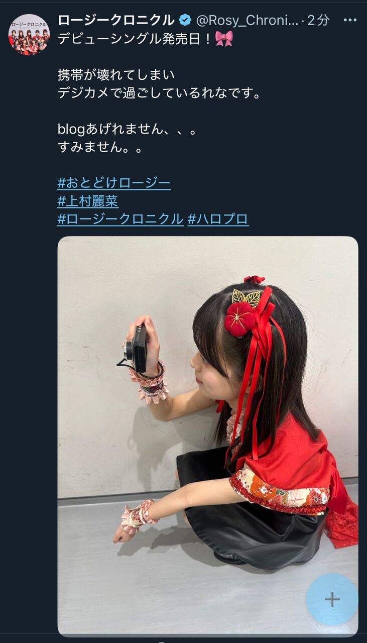 【悲報】上村麗菜ちゃん、携帯が壊れていてブログが書けない模様…