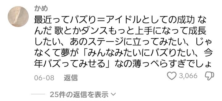【悲報】TikTok「歌やダンスが上手くなりたいとかでなく『バズることがアイドルとしての成功』って考えの最近のアイドル、薄っぺらすぎ」