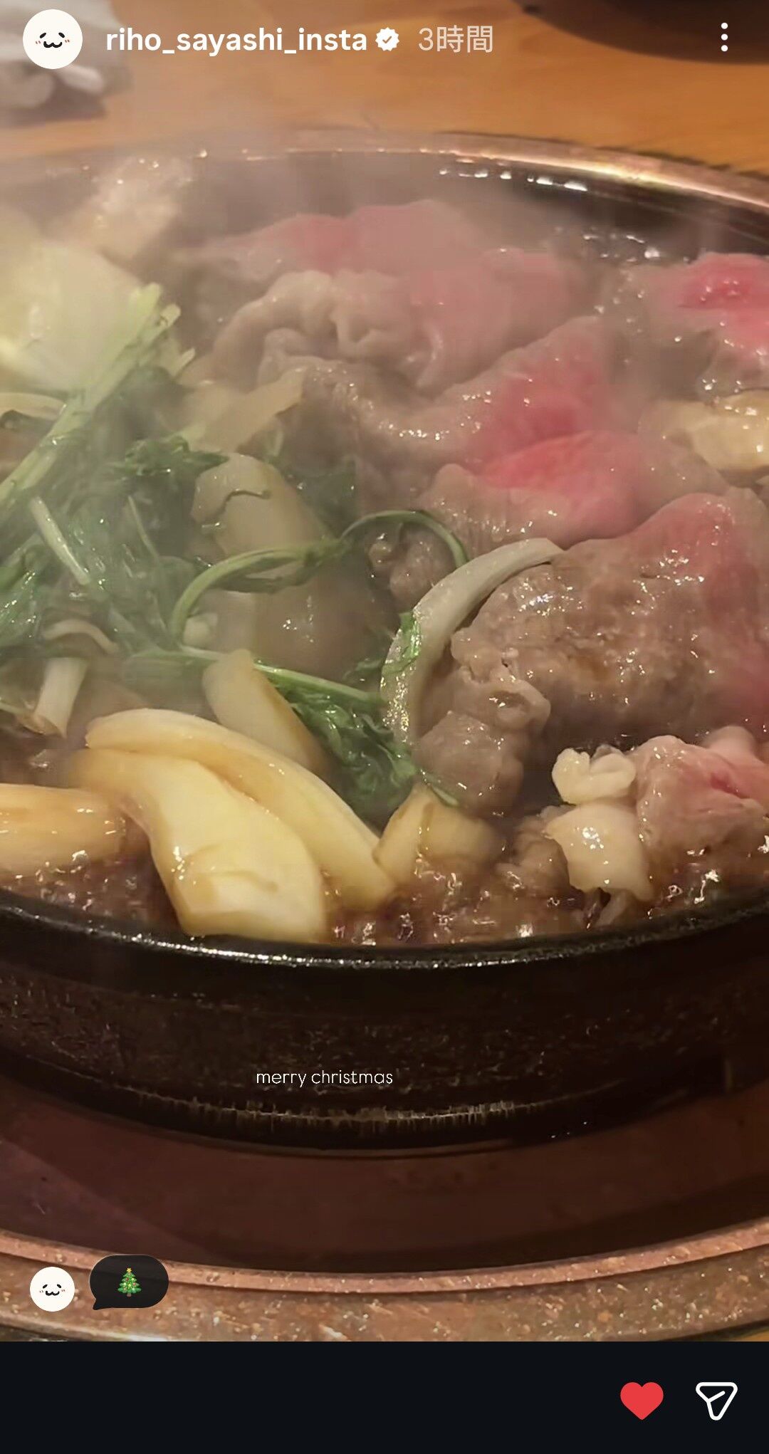 鞘師里保さんクリスマスイブに誰かとすき焼き🎄