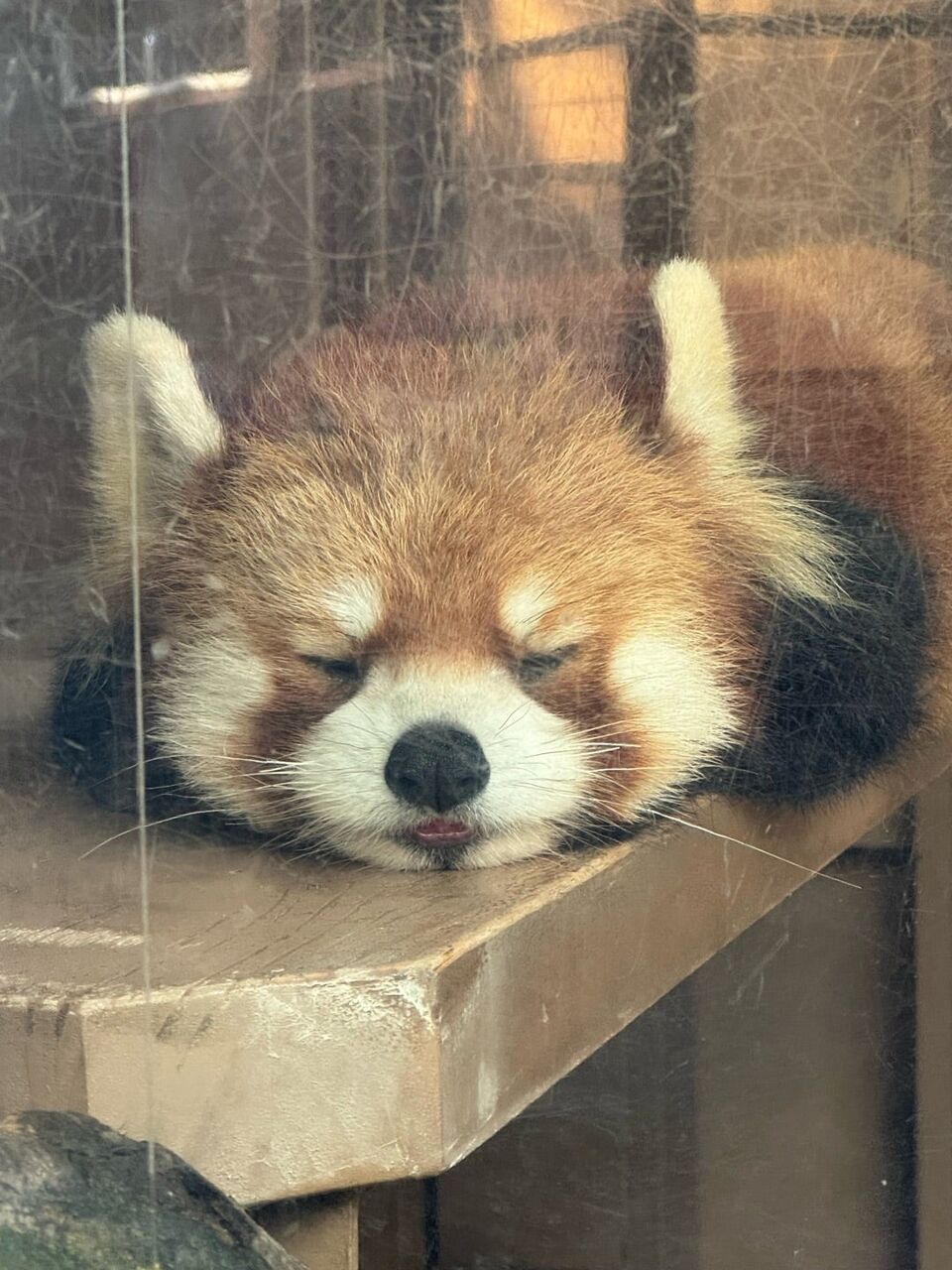 斉藤まどぴが撮影した爆睡するレッサーのドアップ顔