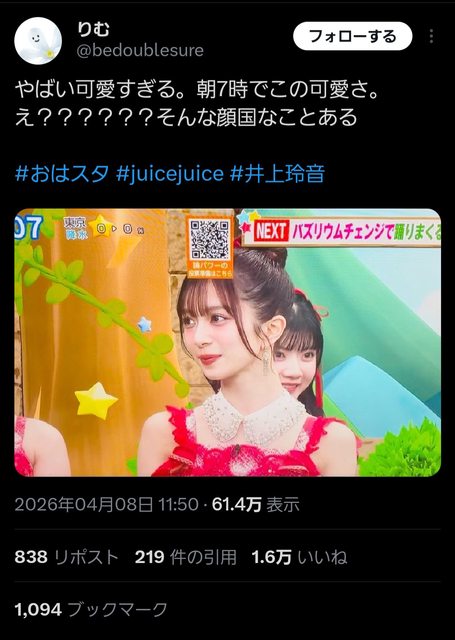 【速報】Juice=Juice井上玲音、Xで万バズ